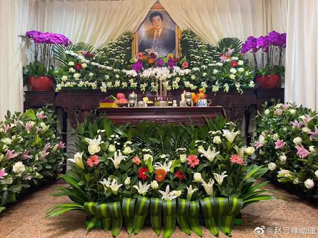 仪式现场,按照赵忠祥平日简朴的作风布置,所有装饰均为白色,简单肃穆。倪萍、赵本山、姜昆、李金斗、鞠萍、水均益、白岩松等好友都敬上了花圈和挽联。赵忠祥的遗像慈祥和蔼,在一片花海簇拥中带着微笑。按照赵忠祥妻子的意思,工作人员在告别厅门口的两块电子屏上,循环播放赵忠祥老师生前主持的节目影像资料。